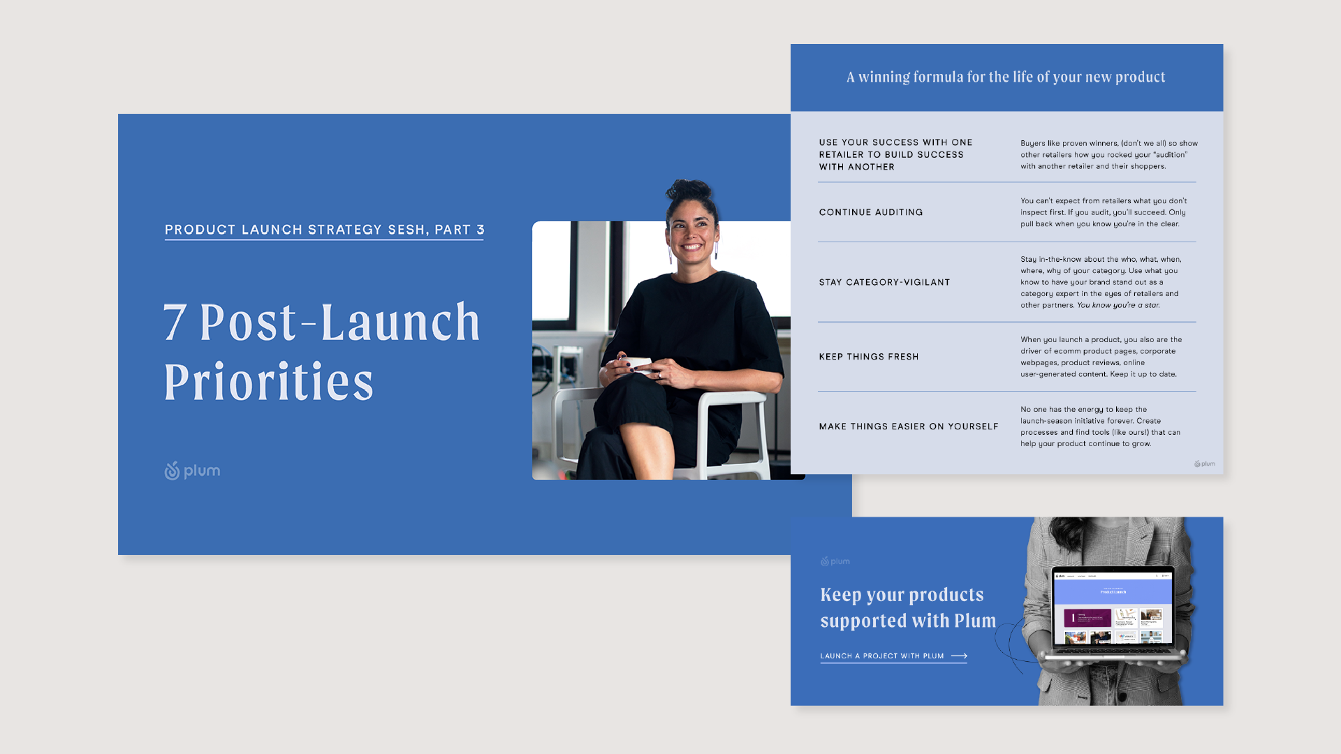 My creative approach involved using a multi-shaded design that employed different shades of the Plum Marketplace blue color palette, creating a cascading effect in the blog posts that progressed from lightest to darkest. This ensured a cohesive and easy-to-follow visual guide for readers, with each step of the launch process color-coded in a distinctive shade. This was first executed on the blog posts, following a three week launch for each blog.
